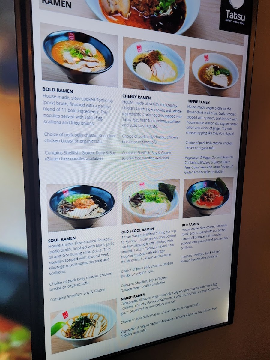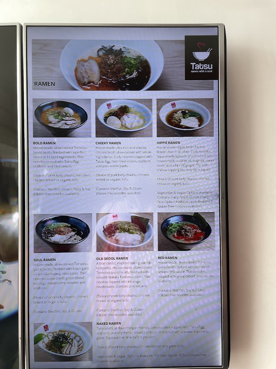 At Tatsu Ramen, the first step to indulging in a delicious bowl of steaming noodles begins with their high-tech kiosks. Here, you can customize your ramen bowl to perfection, choosing from a variety of broths, toppings, and spice levels. Customers rave about the Bold Ramen, renowned for its rich flavor and customizable options, making it a popular choice among regulars. Alison Calvo's review highlights the joy of building your own bowl, while also enjoying an ambiance filled with Demon Slayer figures and the excitement of YuGiOh games in the background.